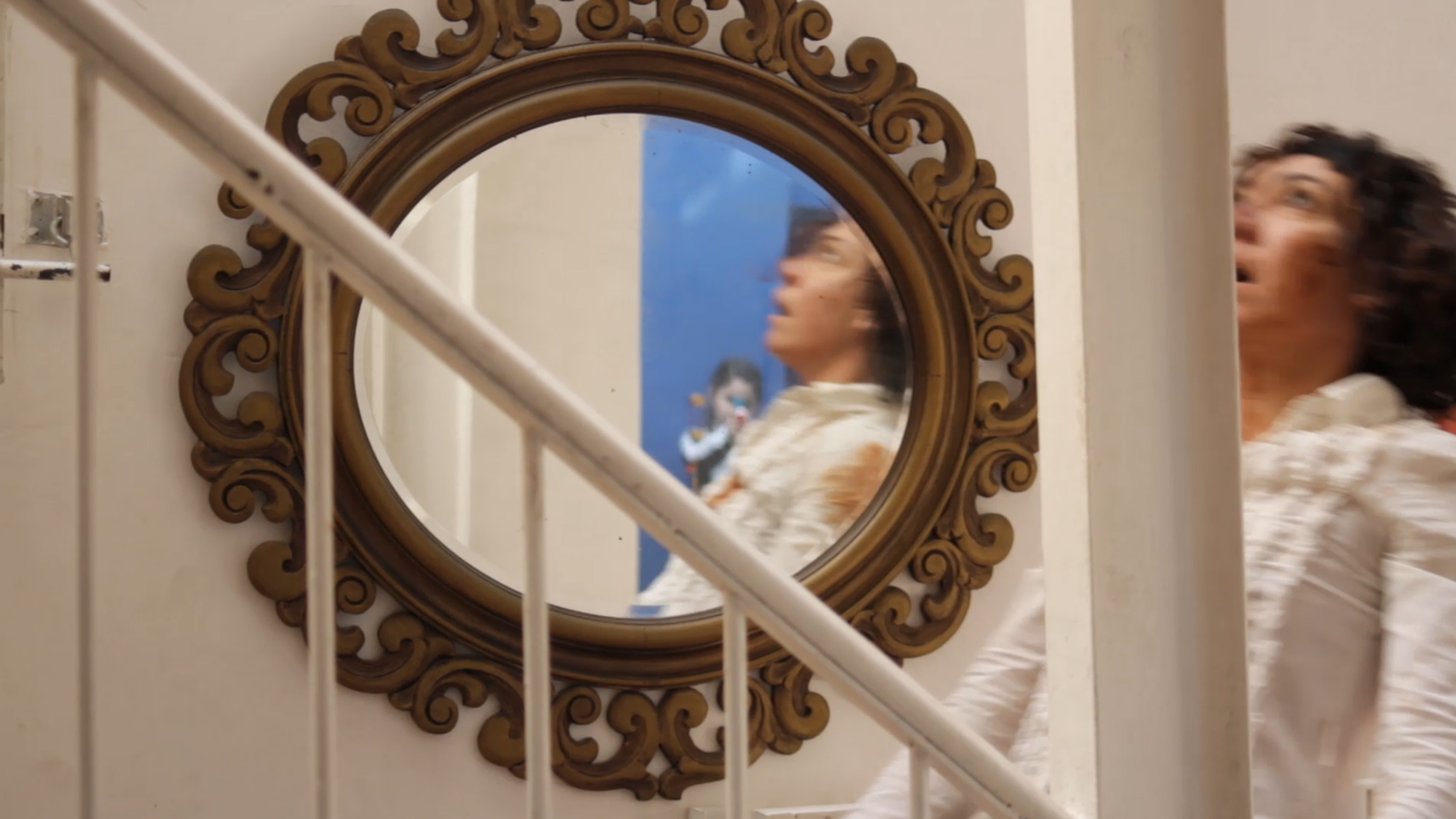 Luciana Acuña viene muriendo mal en escena al menos desde Cosas que pasan (2016). Codirectora del Grupo Krapp, con quién creó aquella pieza, a duras penas sobrevivió las torpes payasadas de Rubios (2019). Y ahora en cuarentena, sin poder entrenar haciendo obra, su cuerpo extraña la vida moreteada de bailarina y coreógrafa. De esta añoranza surge ÚLTIMA RONDA, donde el ensayo de la muerte – valga la paradoja – es justamente lo que le devuelve vida al cuerpo, que se deleita en los riesgos controlados del slapstick (riesgos muy distintos de los que hoy se nos pide evitar). Y ensayar morir así, en familia, con su hija (en escena) y su pareja (detrás de cámara) inevitablemente sugiere también otras necesidades psicológicas y emocionales: encontrar una forma de incorporar la muerte al cuerpo, de entramarla haciéndola relato, convirtiendo la repetición lúdica en un intento de elaboración.