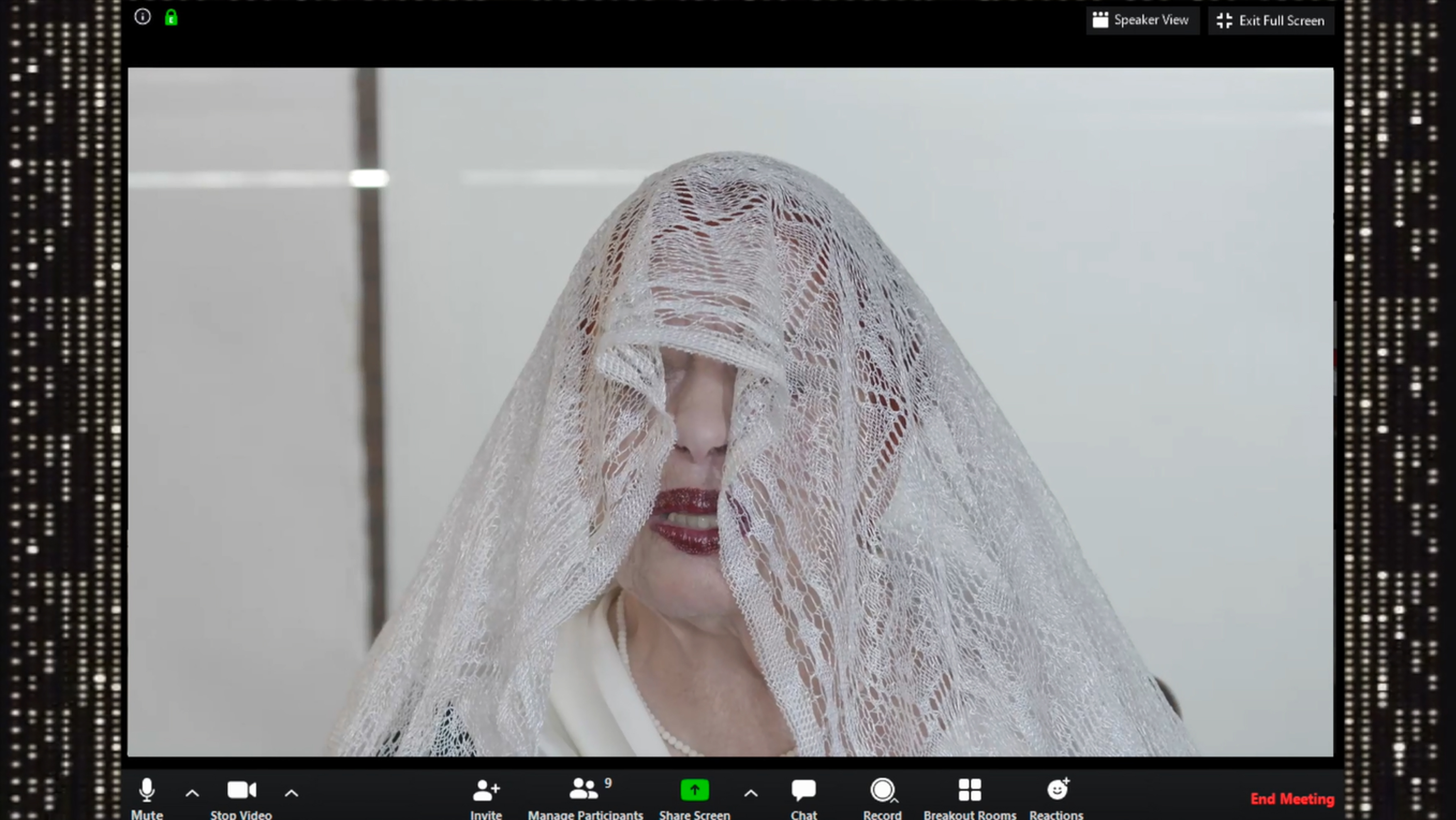 Graciela Taquini, autora del “primer autorretrato performático de la historia del videoarte argentino” (Roles, 1988), cierra nuestro V Ciclo de Performance con una pieza eucarística creada durante el segundo mes de aislamiento social preventivo y obligatorio. CONFIN 2020 es un desenfadado autorretrato que también funciona como retrato colectivo y de época. Las coordenadas afectivas, estéticas y sociales que Taquini establece a través de la grilla de fotos que la rodean trascienden los horizontes del necesario “distanciamiento físico” y le permiten orientarse y dar gracias por esas pequeñas cosas que después de todo han resultado ser no tan pequeñas. Según ella misma, esta videoperformance “es una salmodia pagano/mística, un retablo electrónico, un zoom tan sagrado como profano. Da gracias por lo íntimo y lo cotidiano. Como letanía exorciza el deber ser. En su nombre se evoca la esperanza. Un trabajo amoroso y comunitario con amigos distantes y cercanos.” Enemiga acérrima de lo cursi, como siempre, su sinceridad no precluye el humor y la ironía, y por momentos su candidez también sugiere el desasosiego que todos hemos sentido en algún momento desde el 20 de marzo último. De ahí el efecto catártico de la pieza.